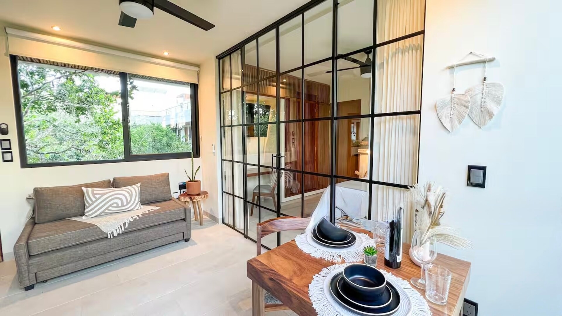 One of the most beautiful airbnbs we've stayed in with an exceptional private pool+terrace. We had a rental vehicle so it was easy for us to get around. Being able to watch sunrises and sunsets overtop of the jungle was so special. It was a very peaceful and quiet stay. The wifi didn't work for most of our stay which was definitely an inconvenience but the host was dealing with it as soon as I mentioned it to her and it was eventually fixed - great responsiveness. The power did go out twice but this is normal for Tulum. I'll dream about this place for sure.