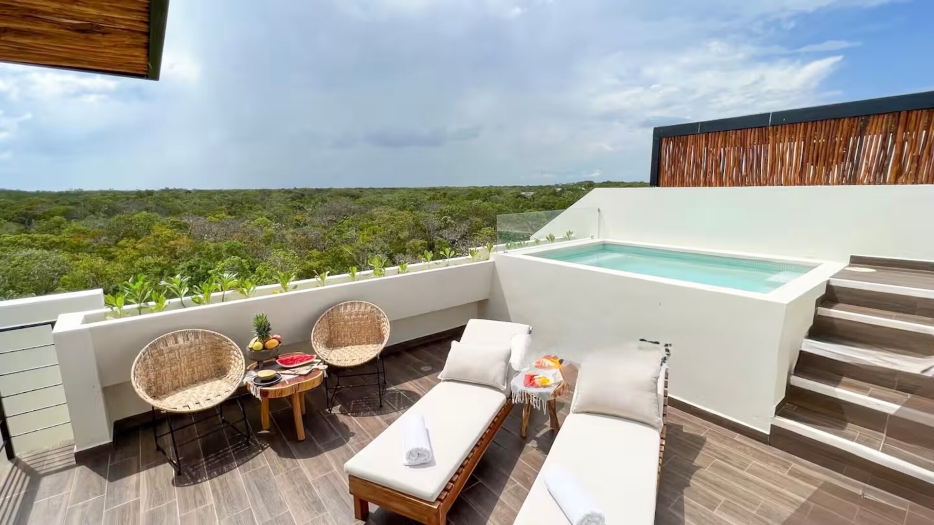 December 2025One of the most beautiful airbnbs we've stayed in with an exceptional private pool+terrace. We had a rental vehicle so it was easy for us to get around. Being able to watch sunrises and sunsets overtop of the jungle was so special. It was a very peaceful and quiet stay. The wifi didn't work for most of our stay which was definitely an inconvenience but the host was dealing with it as soon as I mentioned it to her and it was eventually fixed - great responsiveness. The power did go out twice but this is normal for Tulum. I'll dream about this place for sure.