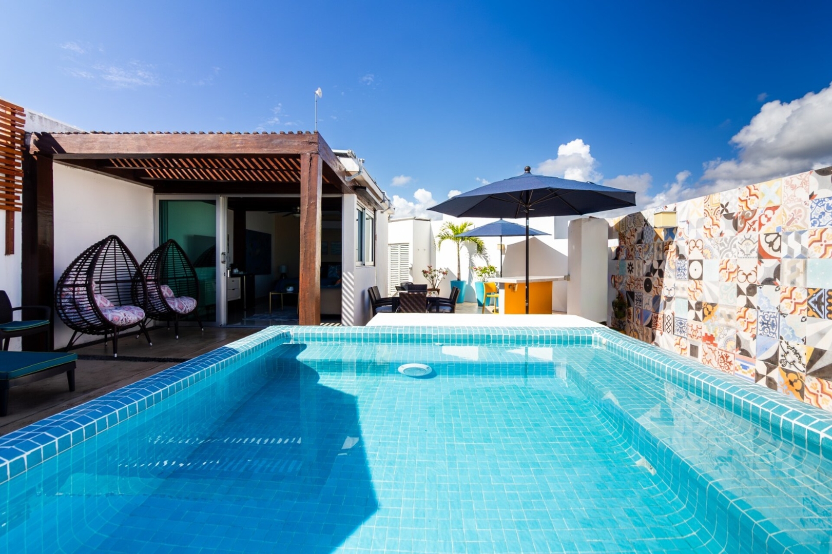 Discover this 3-bedroom penthouse with a rooftop terrace and private pool, located steps from the ADO bus terminal and just three blocks from the iconic 5th Avenue. With spacious rooms, contemporary décor, and premium amenities, it's the ideal place for families and groups seeking comfort, design, and an unbeatable location in Playa del Carmen. Enjoy privacy, luxury, and quick access to the beach, restaurants, and nightlife.